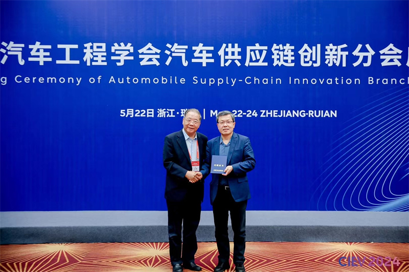 2024年5月22日,在中國汽車工程學(xué)會(huì)汽車供應(yīng)鏈創(chuàng)新分會(huì)成立大會(huì)上,付總為我頒發(fā)分會(huì)顧問證書